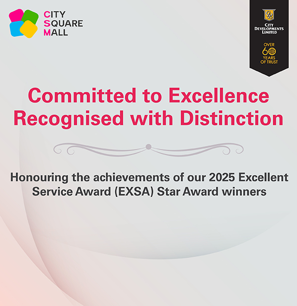 We stand with you! Visit City Square Mall today and enjoy great deals at participating retail stores from now till 31 Dec 2025! Simply flash your HomeTeamNS membership card to enjoy the offer. Terms & conditions apply.
