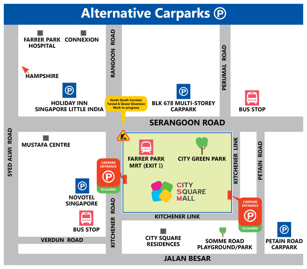 - Carpark access via Kitchener Link or Kitchener Road. Temporary closure of carpark entrance via Kitchener Road on 11 Dec, Thursday from 9am - 7pm.