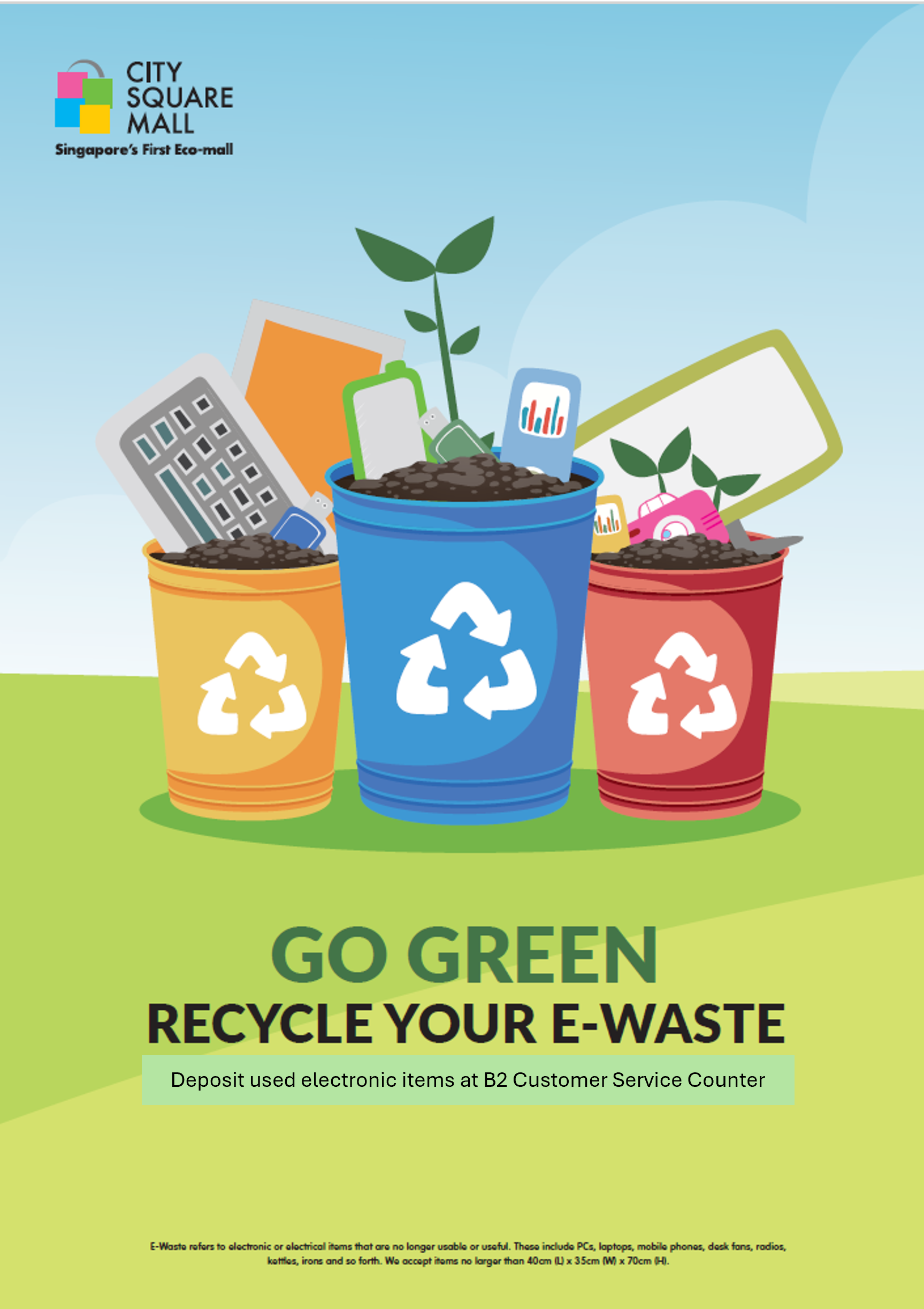 Go green and bring your electronic waste (e.g. small home appliances) to B2 Customer Service Counter for recycling!