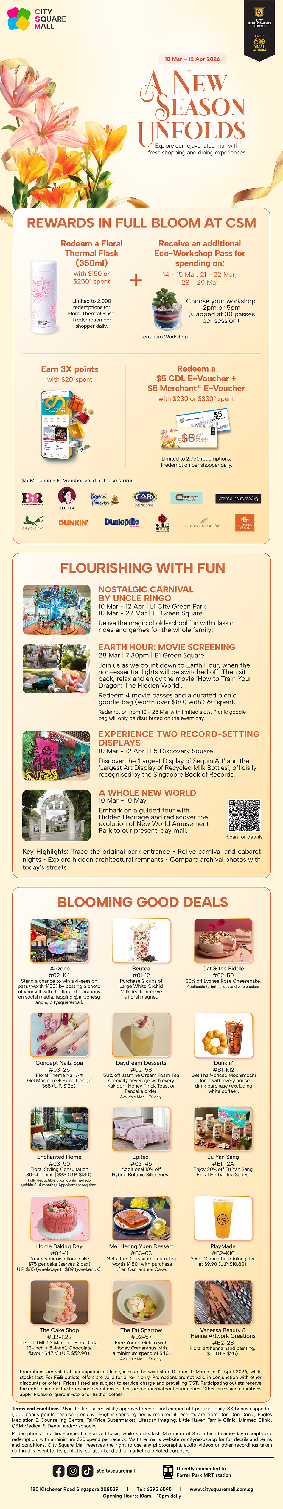 Explore our rejuvenated mall with fresh shopping and dining experiences! Discover Rewards in Full Bloom at CSM as you shop and be rewarded, while the mall comes alive Flourishing with Fun with movie screenings, nostalgic Uncle Ringo rides, curated tour and two record-setting displays.