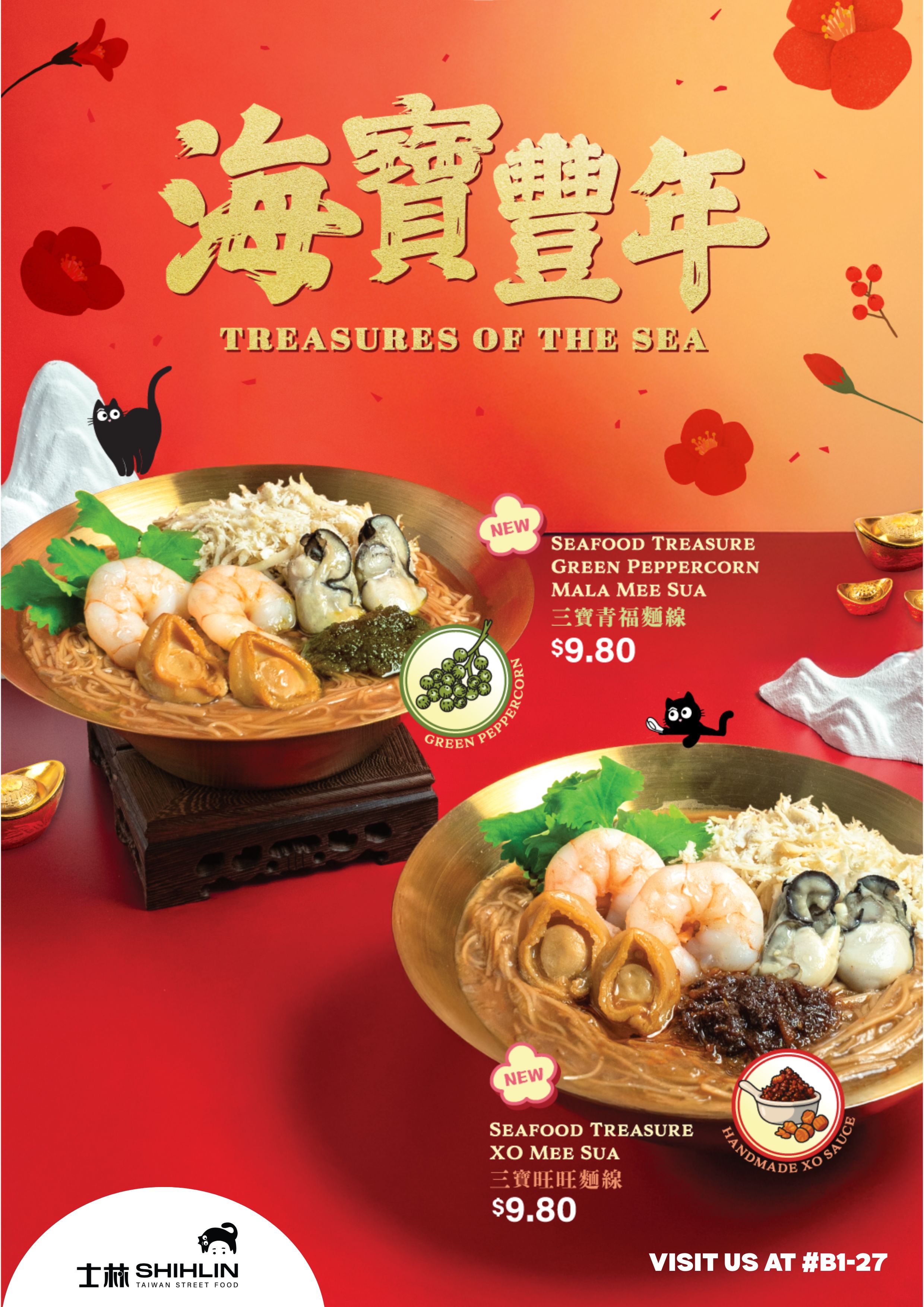 Celebrate Lunar New Year with Shihlin’s Seafood Treasures Mee Sua, featuring premium seafood and rich Taiwanese flavours. Choose from fragrant XO sauce or bold green peppercorn mala, and enjoy a bowl filled with abundance and festive goodness.