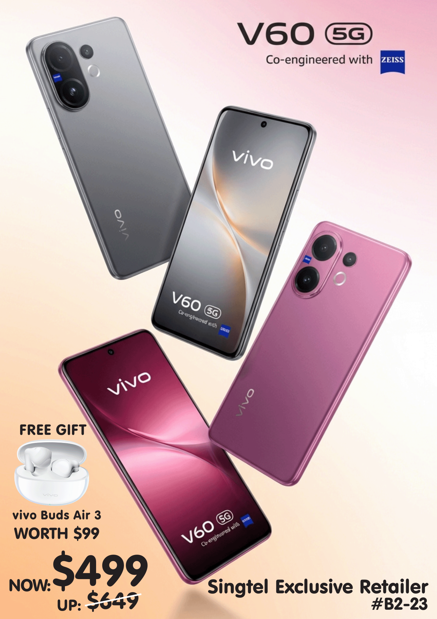 Vivo V60 Special deal going at $499 (usual price $649) Get free vivo Buds Air 3 (worth $99) with each purchase!